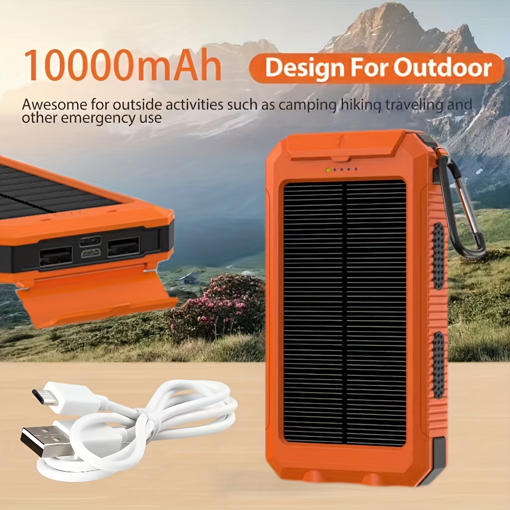 10000mAh/20000mAh Solar Powered Power Bank with Flashlight/USB/Type-C/Micro Interface/compass for Mobile Digital Electronics Devices, Durable and Long-lasting, Travel Camping, LED Flashlight, Hiking Buckle. The Best Gift for Festivals