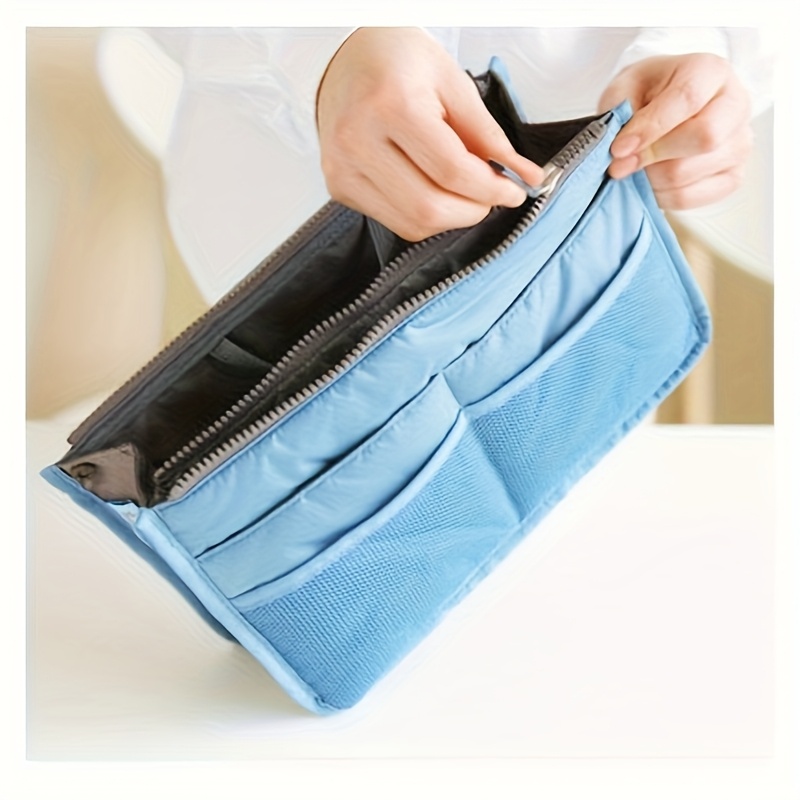 1pc Autumn Sound Multifunctional Double Layer Folding Storage Bag – Large Capacity Zippered Travel Organizer with Mesh Pockets, Durable Polyester Portable Insert Bag for Cosmetics, Electronics & Accessories (13 Colors)